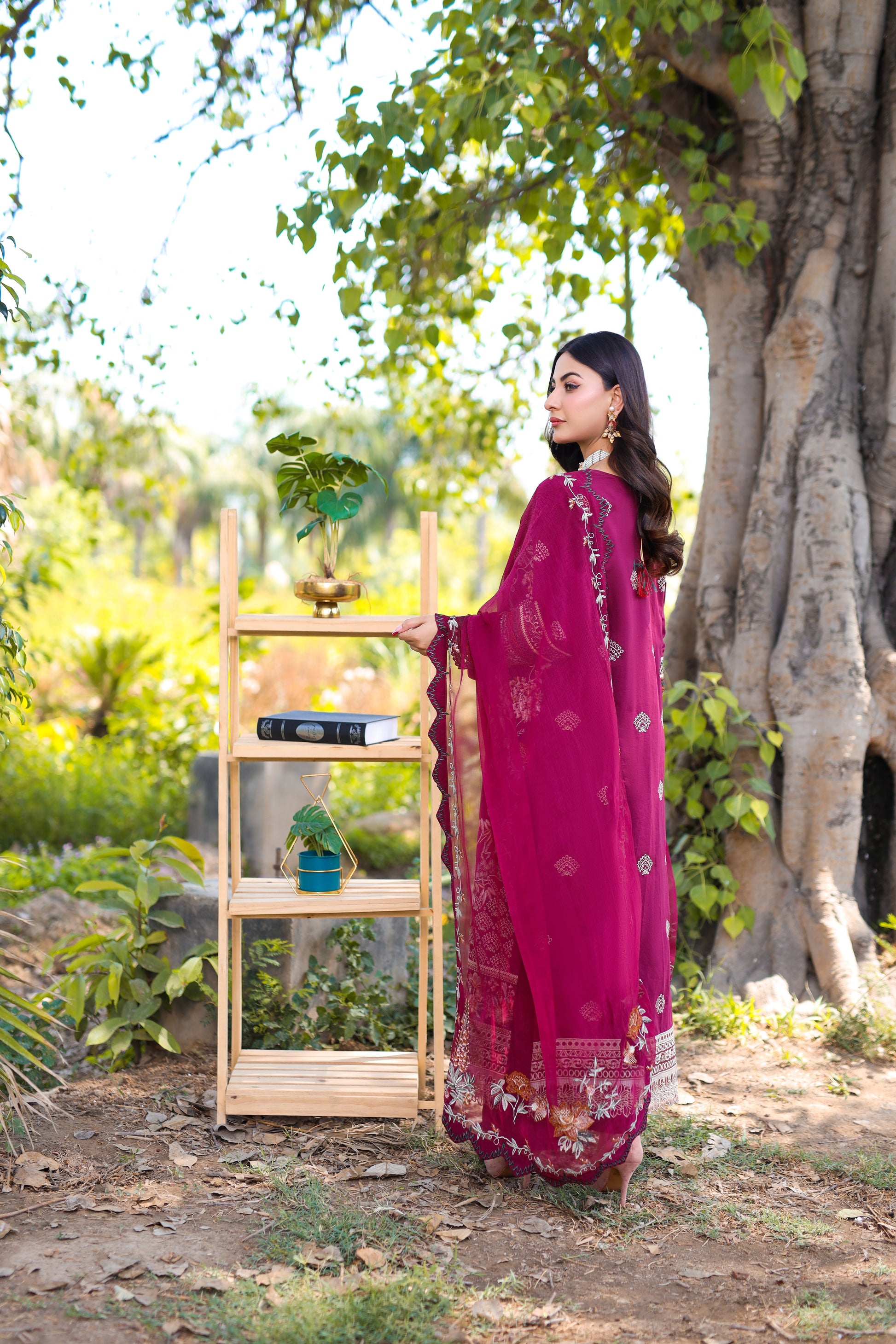 Dyed Embroidered Lawn Shirt Back