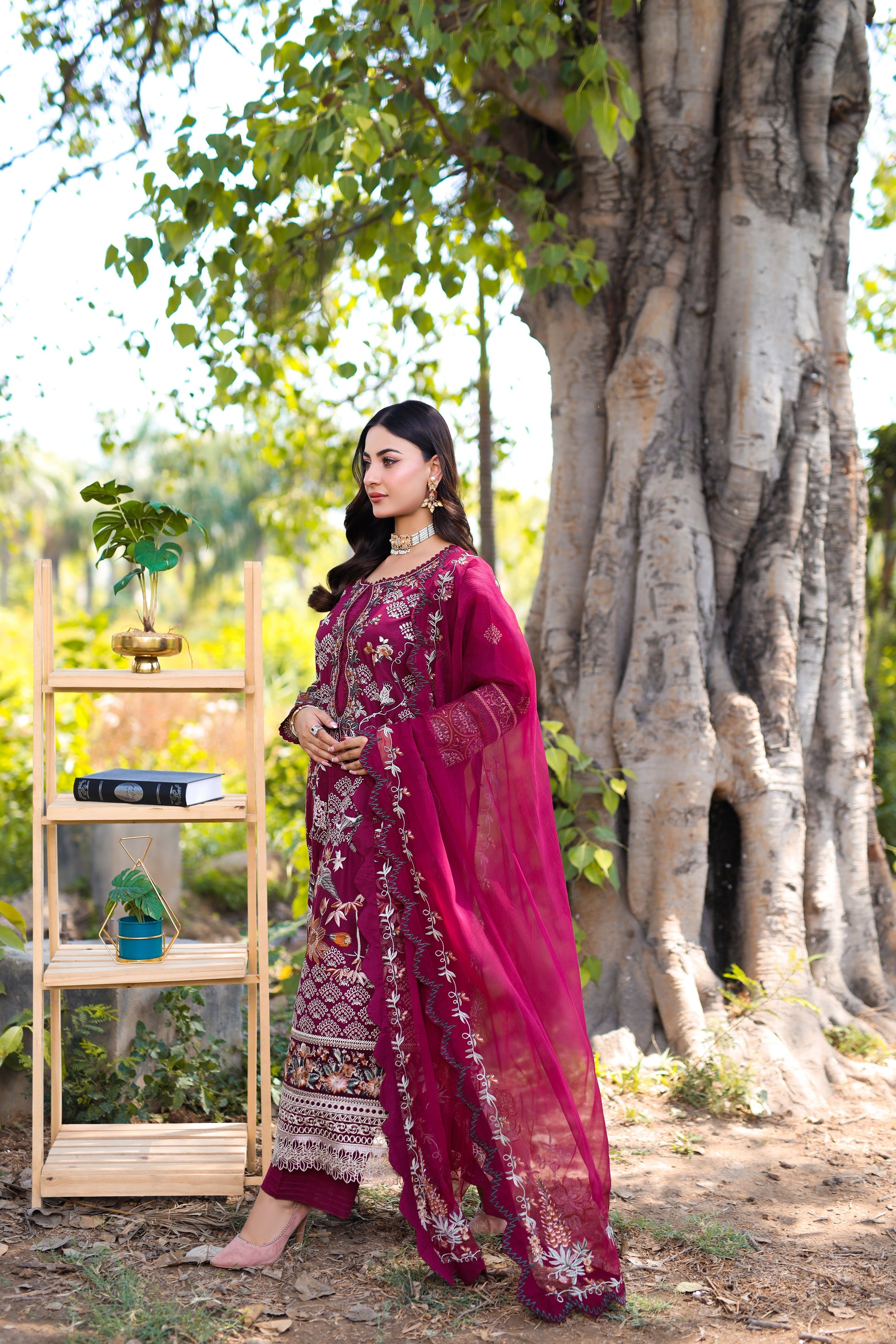 Introducing Rose Ember – a majestic ode to heritage and elegance. Draped in a deep emerald green, this ensemble speaks volumes through its intricate embroidery in rose pink and antique gold, capturing the essence of royal tradition with a modern soul.